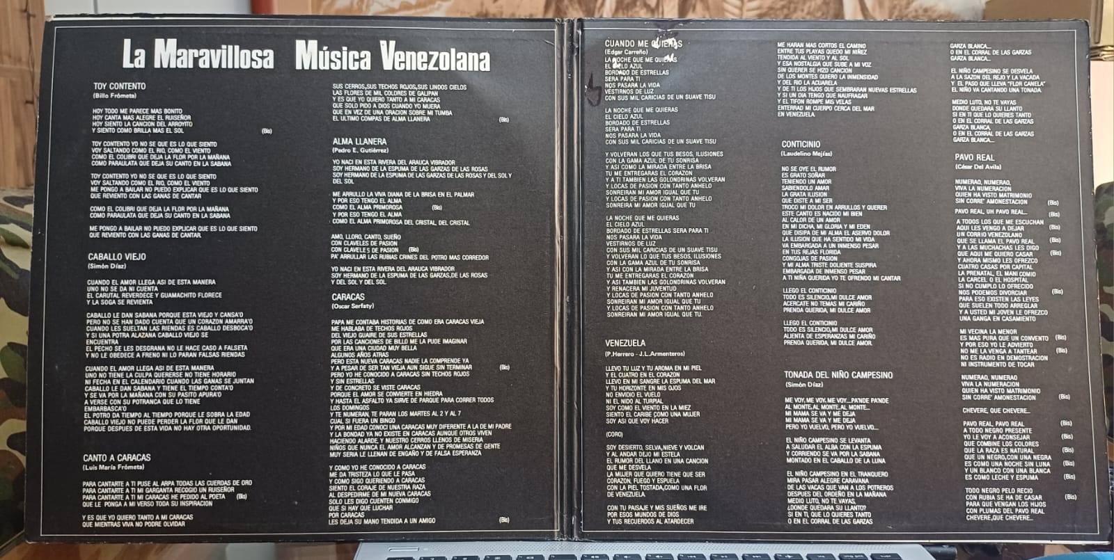 El álbum de vinilo «Various – La Maravillosa Música Venezolana« es una compilación de música folclórica tradicional venezolana, publicada en 1982 por el sello Top Hits como un álbum doble (2xLP)