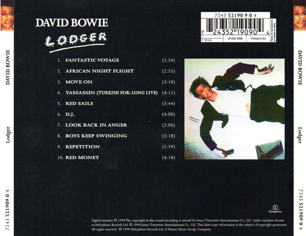 Lodger es el decimotercer álbum de estudio del músico inglés David Bowie , lanzado el 25 de mayo de 1979 a través de RCA Records . Grabado en colaboración con el músico Brian Eno y el productor Tony Visconti , fue el último lanzamiento de su Trilogía de Berlín , tras Low y «Heroes» (ambos de 1977). Las sesiones tuvieron lugar en Suiza en septiembre de 1978 durante un descanso de la gira mundial Isolar II , y en Nueva York en marzo de 1979 al final de la gira. La mayor parte del personal de los lanzamientos anteriores regresó, junto con el guitarrista debutante Adrian Belew . Las sesiones vieron el uso de técnicas inspiradas en las cartas de Estrategias Oblicuas de Eno, como hacer que los músicos intercambiaran instrumentos y tocaran canciones antiguas al revés.