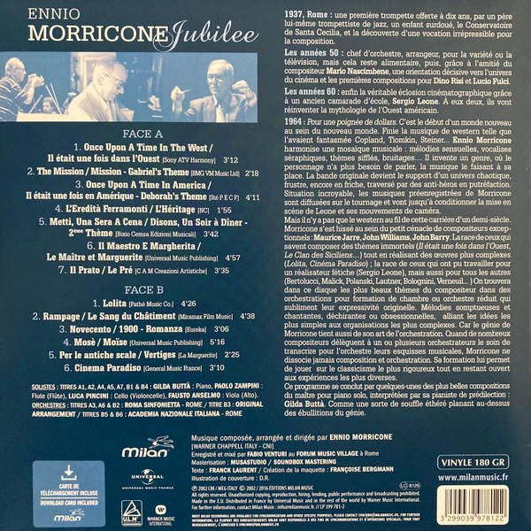 Jubilee es un álbum recopilatorio del legendario compositor italiano Ennio Morricone, lanzado originalmente en el año 2002 y reeditado en formatos como CD y vinilo en 2016 por el sello Milan Records.