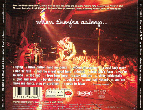 Good Boys… When They’re Asleep… es una recopilación de 1999 del grupo de rock británico Faces. Compilada principalmente por el tecladista Ian McLagan , sirvió para reemplazar a Snakes And Ladders / The Best of Faces ( 1976 ) y para presentar una retrospectiva del grupo en formato CD, de casi ochenta minutos de duración (aunque una retrospectiva en doble LP, exclusivamente para el Reino Unido, Best of Faces , ya había avanzado en cierta medida hacia esos objetivos en 1977; Good Boys fue la primera recopilación de Faces en beneficiarse de la participación activa de un miembro del grupo).