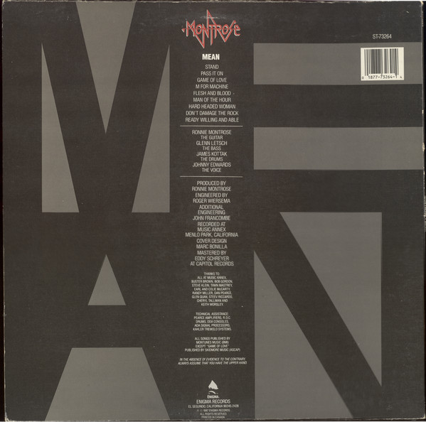 Mean es el quinto y último álbum de estudio de la banda estadounidense de hard rock Montrose, lanzado en 1987 a través de Enigma Records. Marcó un breve regreso del guitarrista Ronnie Montrose al formato de banda tras años de proyectos solistas y su etapa con Gamma. El álbum presenta un sonido más orientado al glam metal de finales de los 80, diferenciándose del estilo de blues-rock pesado de sus primeros trabajos con Sammy Hagar.