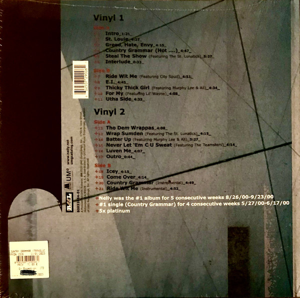 Country Grammar es el álbum debut del rapero estadounidense Nelly, lanzado el 6 de junio de 2000. Este disco introdujo al mundo su estilo único de «pop-rap» y su distintivo acento de Missouri, consolidando el sonido de St. Louis en la escena del hip hop.
