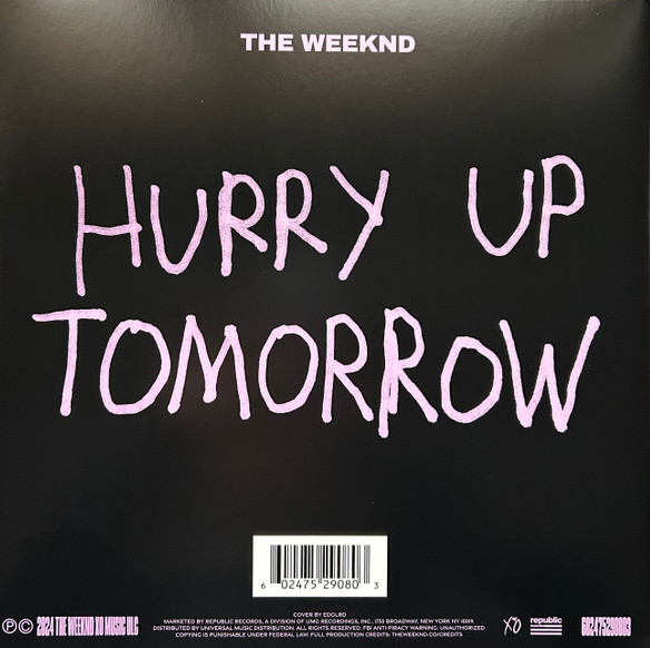 Hurry Up Tomorrow es el sexto álbum de estudio del cantautor canadiense The Weeknd. Fue lanzado a través de XO y Republic Records el 31 de enero de 2025. El álbum presenta voces invitadas no acreditadas de Anitta, Travis Scott, Future, Playboi Carti y Lana Del Rey, con una edición adicional que contiene una aparición adicional de Swedish House Mafia. La producción estuvo a cargo del propio Weeknd, Mike Dean, Sage Skolfield, OPN y Nathan Salon, acompañados por varios productores como Justice y Moroder, con varios otros, incluidos los colaboradores anteriores DaHeala, Oscar Holter, Max Martin , Metro Boomin , Cirkut, DaHeala, ILYA, TBHits, Johnny Jewel, Ojivolta, Swedish House Mafia y Pharrell Williams .
